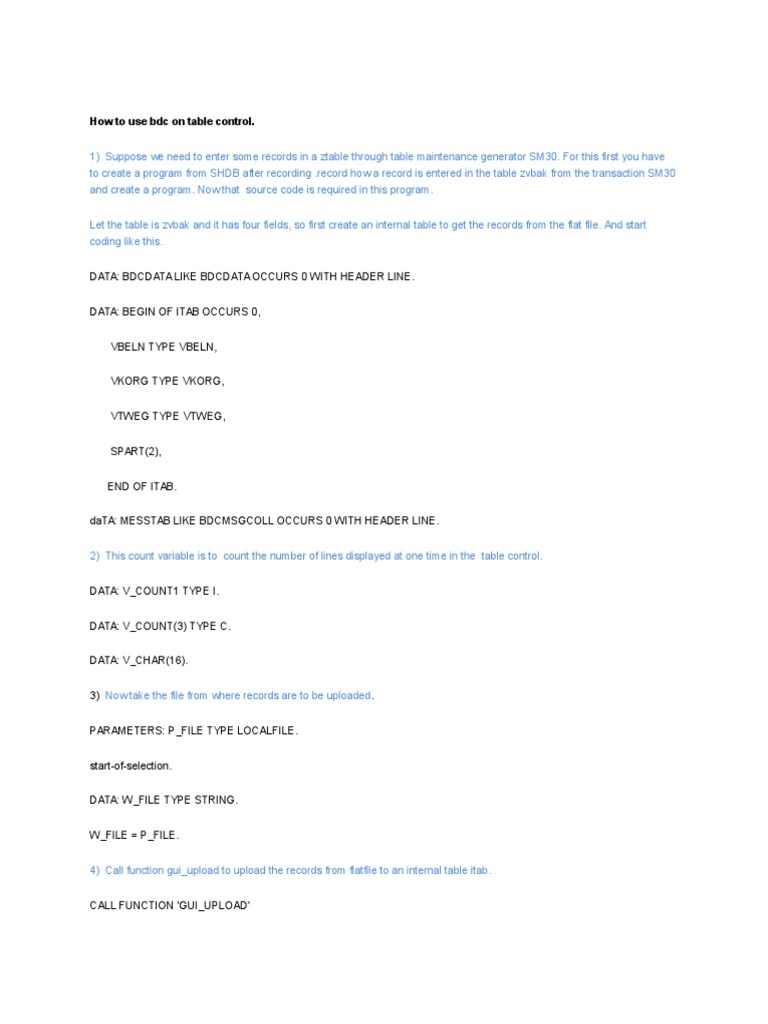 4) Call function gui_upload to upload the records from flatfile to an internal table itab.
