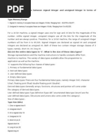 and able to hold 8 bits of data. For signed char 1 sign bit and 7 data bits for unsigned char all 8 data bits.