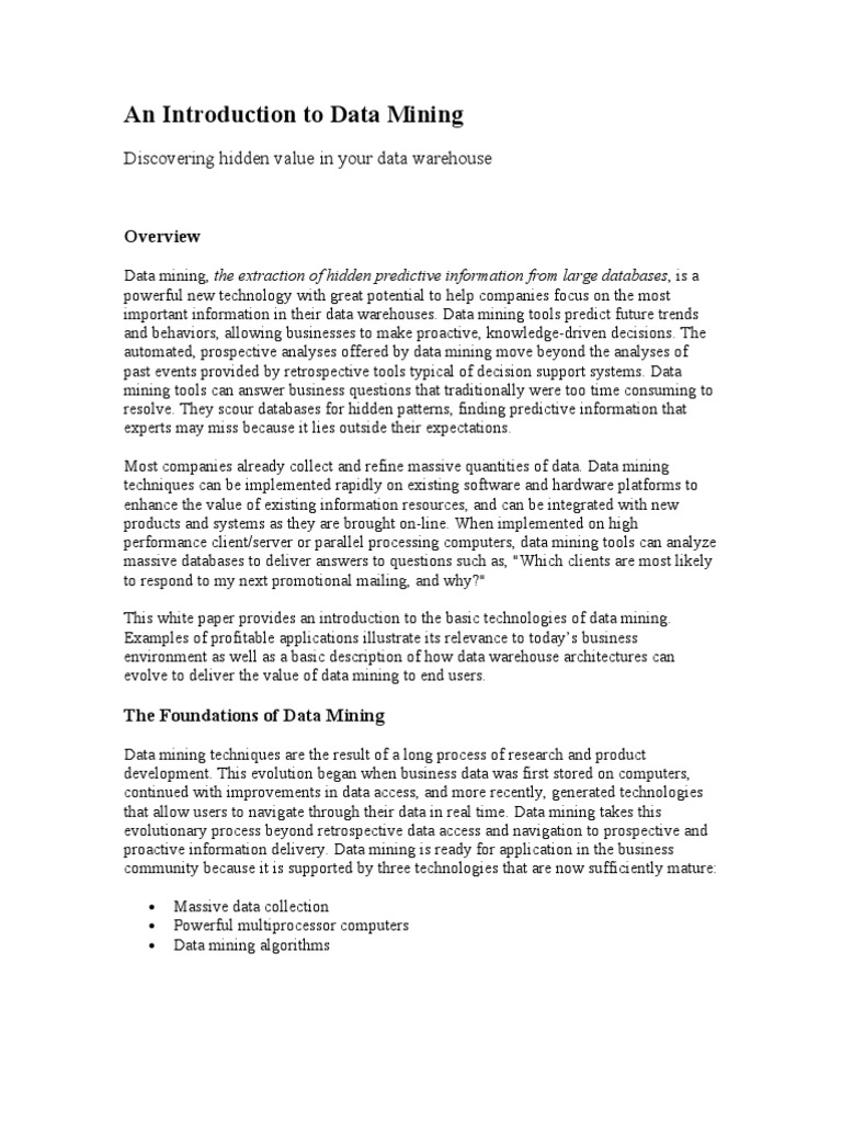 platforms. The appendix to this white paper provides a glossary of data mining terms.
