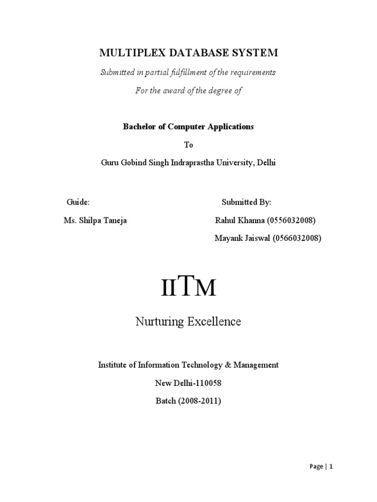 Certified that the Project Report (BCA-355) entitled “MULTIPLEX DATABASE SYSTEM”