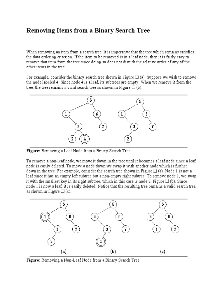 the data ordering criterion. If the item to be removed is in a leaf node, then it is fairly easy to