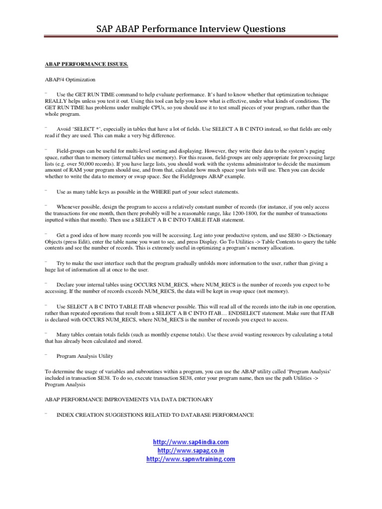 SAP ABAP Performance Interview Questions