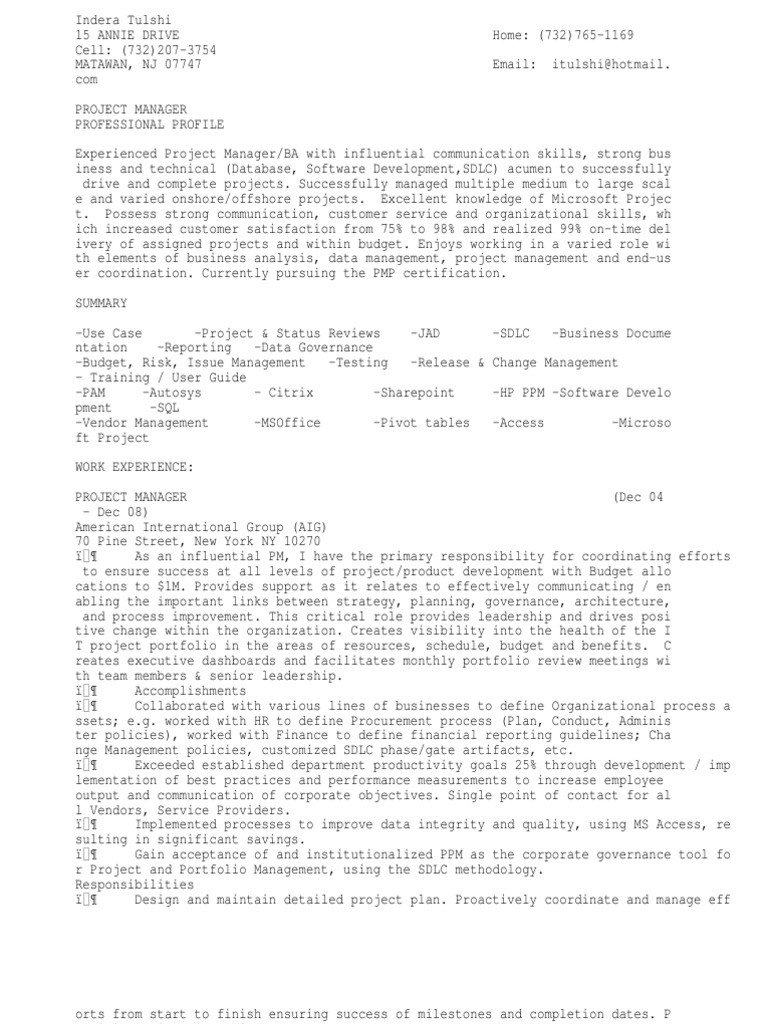 MATAWAN, NJ 07747 Email: itulshi@hotmail.