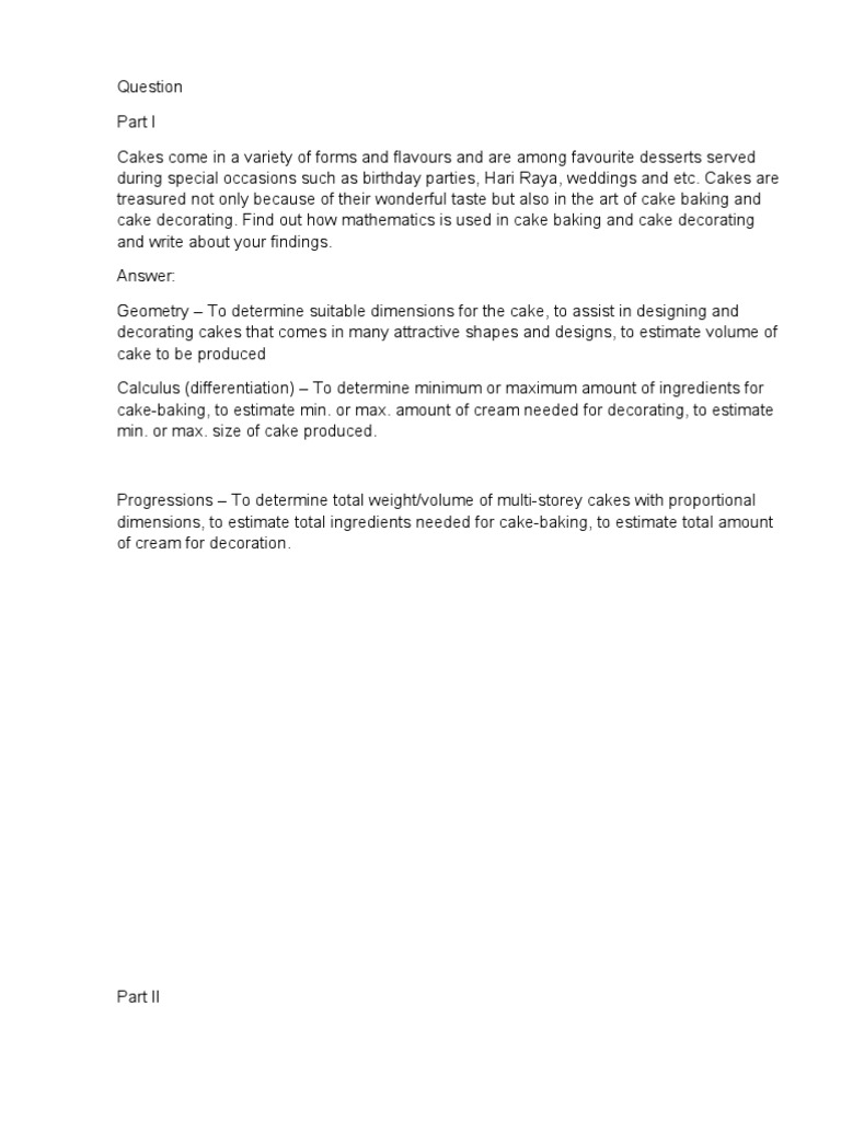 (ii) suggest the dimensions that you think most suitable for the cake. Give reasons for your