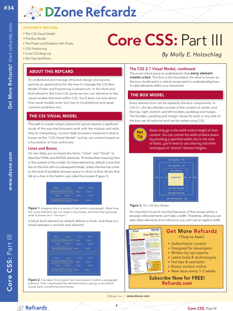 Copyright 2008 DZone, Inc. All rights reserved. No part of this publication may be reproduced, stored in a retrieval system, or transmitted, in any form or by means electronic, mechanical, photocopying, or otherwise, without prior written permission of the publisher. Reference: The Zen of CSS Design, Molly E. Holzschlag and Dave Shea, Peachpit Press, February 2005.