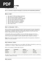 SQL stands for Structured Query Language SQL lets you access and manipulate databases SQL is an ANSI (American National Standards Institute) standard