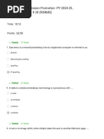 [Link] Question # 5 of 10 ( Start time: [Link] AM ) Total Marks: 1 Password attacks are basically a result of _____ Select correct option: Back door Sniffing Eavesdropping None of the Above Question # 6 of 10 ( Start time: [Link] AM ) Total Marks: 1 Caching ______. Select correct option: have no effect on downloading of the page saves the time of downloading the page increase the time of downloading the page None of Above Question # 7 of 10 ( Start time: [Link] AM ) Total Marks: 1 . A program that performs a specific function such as creating invoices/bills or processing payment received from customers is called _______. Select correct option: Firewall Application program Protocol Web Services Question # 8 of 10 ( Start time: [Link] AM ) Total Marks: 1 Programs that work with the browser to enhance its capabilities. Select correct option: Driver Flash PlugIn None of Above Question # 9 of 10 ( Start time: [Link] AM ) Total Marks: 1