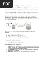the division of labor between the page designer and the web developer because the developer is involved in both page authoring and business logic coding. To summarize, Model 1 is not recommended for these reasons: Navigation problem. If you change the name of a JSP that is referenced by other pages, you must change the name in many locations. There is more temptation to use scriptlets in JSPs because JavaBeans are limited and custom tags are hard to write. However, as explained above, mixing Java code and HTML in JSPs is a bad thing. If you can discipline yourself to not write Java code in JSPs, you'll end up spending more time developing your application because you have to write custom tags for most of your business logic. It's faster to write Java code in Java classes.