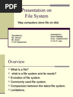 The file system provides the mechanism for on line storage and access to file contents including data and programs. The file system resides permanently on secondary storage which is designed to hold a large amount of data permanently.