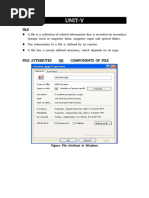 Computers can store information on various storage media such as magnetic disks, magnetic tapes and optical disks. OS provides a uniform logical view of information storage. OS abstracts from the physical properties of its storage devices to define a logical storage unit called a file. Files are mapped by OS onto physical devices. These storage devices are non volatile so the contents are persistent through power failures and system reboots. A file is a named collection of related information that is recorded on secondary storage. A file is the smallest allotment of logical secondary storage; that is data cannot be written to secondary storage unless they are within a file. Files represent programs and data. Data files may be numeric, alphabetic, alphanumeric or binary. Files may be free form such as text files or may be formatted rigidly. A file is a sequence of bits, bytes, lines or records. Information in a file is defined by its creator. Many different types of information may be stored in a file source programs, object programs, executable programs, numeric data, text etc. A file has a certain defined structure which depends on its type. Text file sequence of characters organized into lines Source file sequence of sub routines and functions each of which is further organized as declarations followed by executable statements. Object file sequence of bytes organized into blocks understandable by the systems linker Executable file series of code sections that the loader can bring into memory and execute. File Attributes A file is referred to by its name. A name is usually a string of characters. When a file is named, it becomes independent of the process, the user and even the system that created it. A files attributes vary from one OS to another but consist of these Name: symbolic file name is the only information kept in human readable form.
