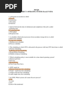Ans: Choosing a file organization is a design decision, hence it must be done having in mind the achievement of good performance with respect to the most likely usage of the file. The criteria usually considered important are: 1. fast access to single record or collection of related records 2. Easy record adding/update/removal, without disrupting (1) 3. Storage efficiency 4. Redundancy as a warranty against data corruption. Needless to say, these requirements are in contrast with each other for all but the most trivial situations, and its the designer job to find a good compromise among them, yielding an adequate solution to the problem at hand. For example, easiness of adding/ etc. is not an issue when defining the data organization of CD ROM product, whereas fast access is given the huge amount of data that this media can store. However as it will become apparent shortly, fast access techniques are based on the use additional information about the records, which in turn competes with the high volumes of data to be stored. Logical data Organization is indeed the subject of whole shelves of books in the Database section of your library. Here well briefly address some of the simpler used techniques, mainly because of their relevance to data management from the lower-level (with respect to a databases) point of view of an OS. Five organization models will be considered: (i) Pile. (ii) Sequential. (iii) indexed-sequential. (iv)Indexed (v) Hashed. Q.107 Compare pre-emptive and non-preemptive scheduling policies. (4)