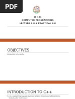 MCA 304 Object Oriented Programming and C++ UNITI Object oriented programming the object oriented approach, characteristics of object oriented languages objects, classes, inheritance, reusability, creating new data types, polymorphism and overloading. C++ programming basics basic program construction comments, variables, constants, expressions, statements, cm and cout, manipulators, type conversion, arithmetic operators, library functions. Loops and decisions relational operators, loops for loop, do loop and while loop decisions, if statement, if.. else, else.. if constructs, switch statement and conditional operator logical operators other control statements. Structures defining a structure, accessing structwe members, other structure features enumerated data types. Functions, function declaration, calling a function definition passing arguments to function returning values from functions, reference arguments overloaded functions in functions default arguments variables and storage classes, returning by reference. UNITII Objects and Classes simple class, specifying the class, using the class, C++ objects, constructors, destructors, objects as function arguments, overloaded constructors, member functions and objects as arguments returning objects from function structures and classes, objects and memory, static class data. Arrays array fundamentals defining arrays, accessing array elements, initializing arrays, multidimensional arrays, passing arrays to functions and arrays of structures arrays as class member data arrays of objects, strings variable constants, array of strings, member data arrays of objects, strings -variables, constants, string as class member and a user defined string type. Operator overloading overloading unary operators keyword, arguments, return values, nameless temporary objects, limitation of increment operators, overloading binary operators, arithmetic operators, multiple overloading- data conversion between basic data types, between objects and basic data types, between objects of different classes. Inheritance derived class and base class, derived class constructors, overloading member functions, class hierarchies, public and private inheritance, levels of inheritance, multiple inheritance classes with classes, C++ graphics text mode functions, window, cputs, clrscr functions and box class graphics mode functions initgraph, circle and close graph functions, colors setcolor, setlinestyle and floodfill functions, rectangle() and line() functions polygons and inheritance sound and motion text in graphics mode.