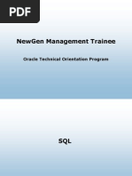 ADD_MONTHS(D,N): It returns date after adding the number of months specified with the function. LAST_DAY(D): It returns the last date of the month specified with the function MONTHS_BETWEEN(D1,D2): It returns number of months between D1 and D2. NEXT_DAY(DATE, CHAR): It returns the date of the first week day named by char . char must be a day of the week. GROUP BY CLAUSE The group by clause is another section of the select statement. This optional class tells oracle to group rows based on distinct values that exists for specified columns. HAVING CLAUSE The having clause can be used in conjunction with the group by clause. Having imposes a condition on the group by clause, which further filters the groups created by the group by clause. SET OPERATIONS UNION CLAUSE: Multiple queries can be put together and their output combined using the union clause. The union clause merges the output of two or more queries into a single set of rows and columns. INTERSECT CLAUSE: Multiple queries can be put together and their output can be combined using the intersect clause. The intersect clause outputs only rows produced by both the queries intersected. The output in an intersect clause will include only those rows that are retrieved by both the queries. JOIN OPERATIONS INNER JOIN/ NATURAL JOIN/ JOIN: It is a binary operation that allows us to combine certain selections and a Cartesian product into one operation. OUTER JOIN: It is an extension of join operation to deal with missing information. Left Outer Join: It takes tuples in the left relation that did not match with any tuple in the right relation, pads the tuples with null values for all other attributes from the right relation and adds them to the result of the natural join. Right Outer Join: It takes tuples in the right relation that did not match with any tuple in the left relation, pads the tuples with null values for all other attributes from the left relation and adds them to the result of the natural join. Full Outer Join: It combines tuples from both the left and the right relation and pads the tuples with null values for the missing attributes and them to the result of the natural join.