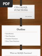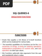 MAX (EXPR): It returns maximum value of the expression. SUM(N): It returns sum of values of n. CONVERSION FUCTIONS TO_NUMBER(CHAR): It converts the char value containing a number to a value of number data type. TO_CHAR(N,FMT): It converts a value of number data type to a value of char data type, using the optional format string. It accepts a number n and a numeric format fmt in which the number has to appear. If fmt is omitted, n is converted to a char value exactly long enough to hold significant digits. TO_CHAR(DATE, FMT): It converts a value of data type to char value. It accepts a date as well as the format in which the date has to appear. Fmt must be a date format. If fmt is omitted, date is the default date format. DATE FUNCTIONS SYSDATE : The sysdate is a pseudo column that contains the current date and time. It requires no arguments when selected from the table dual and returns the current date.