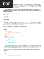 The difference between the two is with the While ... part at the bottom, the code above it gets executed at least once. With the code on the first line after the word Do, the code might not get executed at all. After all, the number inside the variable might already be Greater Than 5. If it is, Visual Basic won't execute the code.