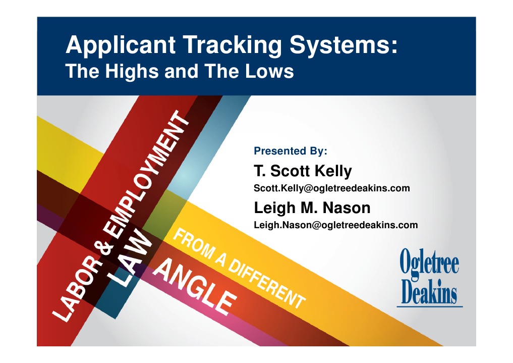 What data is solicited and when? Race/gender/veteran status/disability What data is available to whom? Demographic info viewed by recruiters and managers? Ensure site is user-friendly For managers/HR/recruiters For job seekers Need to insure adequate communication, training, and piloting or it wont be used consistently An ATS will NOT Find talent for you Take the place of engagement with job seekers Fix broken recruiting and hiring processes
