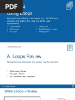 Understand the components of a Virtual Instrument Introduce LabVIEW and common LabVIEW functions Build a simple data acquisition application Create a subroutine in LabVIEW Work with Arrays, Clusters, and Structures Learn About Printing & Documentation Features Develop in Basic Programming Architectures Publish VIs on the Web