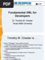 "Valid" XML document is a "Well Formed" XML document, which also conforms to the rules of a Document Type Definition (DTD) History Of XML: XML was developed to overcome the shortcomings of its two predecessors, HTML and SGML which were both very successful markup languages, but which were both restricted in certain ways. SGML, the international standard for marking up data, has been used since the 1980's. SGML is an extremely powerful and extensible tool for semantic markup which is particularly useful for cataloging and indexing data. Like XML, SGML can be used to create an infinite number of markup languages and has a host of other resources as well. However, SGML is complex, especially for the everyday uses of the web. Moreover, SGML is expensive. Adding SGML capability to a word processor could double or triple the price. Finally, the commercial browsers do not intend to ever support SGML. HTML on the other hand was free, simple and widely supported. HTML was originally designed to provide a very simple version of SGML which could be used by regular people. However, HTML had serious defects. XML So in 1996, discussions began which focused on how to define a markup language with the power and extensibility of SGML but with the simplicity of HTML. The World Wide Web Consortium (W3C) decided to sponsor a group of SGML gurus including Jon Bosak from Sun. Essentially, Bosak and his team did to SGML what the Java team had done to C++. All of the non-essential, unused, cryptic parts of SGML were sliced away. What remained was a lean, mean marking up machine: XML. The specification of XML (written mostly by Tim Bray and C.M. Sperberg-McQueen) was only 26 pages as opposed to the 500+ pages of the SGML specification! Nevertheless, all the useful things which could be done by SGML, could also be done with XML. XML Over the next few years, XML evolved, drawing from the work of its sponsors and the work of developers solving similar problems such as Peter Murray-Rust who had been working on CML (Chemical Markup Language) and the consortium of folks working on MathML. By mid 1997 The eXtensible Linking Language XLL project was underway and by the summer of 1997, Microsoft had launched the Channel Definition Format (CDF) as one of the first realworld applications of XML. Finally, in 1998, the W3C approved Version 1.0 of the XML specification and a new language was born. Why Is XML So Important? There are number of reasons that contributes to the XML's increasing acceptance , few of them are: 1. Plain Text 2. Data Identification