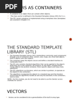 The simplest STL container is vector. Vector is just an array with extended functionality. By the way, vector is the only container that is backward-compatible to native C code this means that vector actually IS the array, but with some additional features.