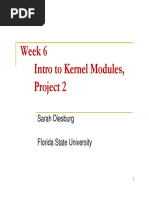 a file in the /proc file system. /proc is a pseudo-file system, where reads from files return data manufactured by the kernel, and data written to files is read and handled by the kernel. Before /proc, all user-kernel communication had to happen through a system call. Using a system call meant choosing between finding a system call that already behaved the way you needed (often not possible), creating a new system call (requiring global changes to the kernel, using up a system call number, and generally frowned upon), or using the catch-all ioctl() system call, which requires the creation of a special file that the ioctl() operates on (complex and frequently buggy, and very much frowned upon). /proc provides a simple, predefined way to pass data between the kernel and userspace with just enough framework to be useful, but still enough freedom that kernel modules can do what they need. For our purposes, we want a file in /proc that will return "Hello, world!" when read. We'll use /proc/hello_world. Download and extract the hello_proc module tarball. We'll run through the code in hello_proc.c.