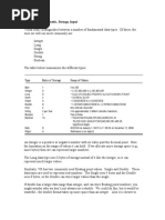 The different types of variables require different amounts of storage. Depending on the storage and memory capacity of your computer and the size of the program that you are developing, these can be important considerations. Variable Required Bytes of Storage Integer 2 Single-precision 4 Double-precision8 Arrays Required Bytes of Storage Integer 2 per element Single-precision 4 per element Double-precision8 per element Strings: Three bytes overhead, plus the present contents of the string as one byte for each character in the string. Quotation marks marking the beginning and end of each string are not counted.