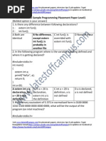 TITLE: Sasken Sample Programming Placement Paper Level1 (Bolded option is your answer) 1. What are the types of linkages? A External, Internal and None 2. How would you round off a value from 1.66 to 2.0? A ceil(1.66) 3. By default a real number is treated as a A double 4. Is the following statement a declaration or definition? extern int i; A Declaration 5. When we mention the prototype of a function? A Declaring 6. What will you do to treat the constant 3.14 as a long double? A use 3.14L