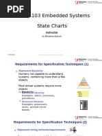 Chapter 2: A Crash Course in Statecharts 2.2.5 Transition Execution Sequence..............................................................................................35 2.2.6 Internal Transitions .................................................................................................................36 2.2.7 Pseudostates ............................................................................................................................36 2.2.8 Refined Event Handling.........................................................................................................37 2.2.9 Semantics versus Notation.....................................................................................................37 2.2.10 Statecharts versus Flowcharts..............................................................................................38 2.2.11 Statecharts and Automatic Code Synthesis..........................................................................38 2.3 Examples of State Models...............................................................................................................39 2.3.1 Quantum Calculator...............................................................................................................40 2.3.2 Hydrogen Atom......................................................................................................................42 2.4 Summary..........................................................................................................................................45 Chapter 3: Standard State Machine Implementations ..................................................................................47 Overview................................................................................................................................................47 3.1 State Machine Interface...................................................................................................................47 3.2 Nested switch Statement..................................................................................................................48 3.3 State Table.......................................................................................................................................51 3.4 State Design Pattern.........................................................................................................................54 3.5 Optimal FSM Implementation.........................................................................................................57 3.6 State Machines and C++ Exception Handling.................................................................................60 3.7 Role of PointertoMember Functions...........................................................................................60 3.8 Implementing Guards, Junctions, and Choice Points......................................................................62 3.9 Implementing Entry and Exit Actions.............................................................................................63 3.10 Dealing with State Hierarchy.........................................................................................................63 3.11 Summary........................................................................................................................................64 Chapter 4: Implementing Behavioral Inheritance .........................................................................................66 Overview................................................................................................................................................66 4.1 Structure...........................................................................................................................................67 4.1.1 Events.....................................................................................................................................69 4.1.2 States......................................................................................................................................71 4.1.3 Entry/Exit Actions and Initial Transitions ..............................................................................72 4.1.4 State Transitions.....................................................................................................................73 4.1.5 The top State and the initial Pseudostate................................................................................74 4.2 An Annotated Example....................................................................................................................75 4.2.1 Enumerating Signals and Subclassing QHsm........................................................................76 4.2.2 Defining State Handler Methods............................................................................................77 4.2.3 Initialization and Dispatching Events .....................................................................................79 4.2.4 Test Run.................................................................................................................................80 4.3 Heuristics and Idioms......................................................................................................................81 4.3.1 Structuring State Machine Code .............................................................................................81 4.3.2 Choosing the Right Signal Granularity..................................................................................83 4.3.3 UMLCompliant HSMs .........................................................................................................83 4.4 The Event Processor........................................................................................................................85 4.4.1 Initializing the State Machine: The init() Method.............................................