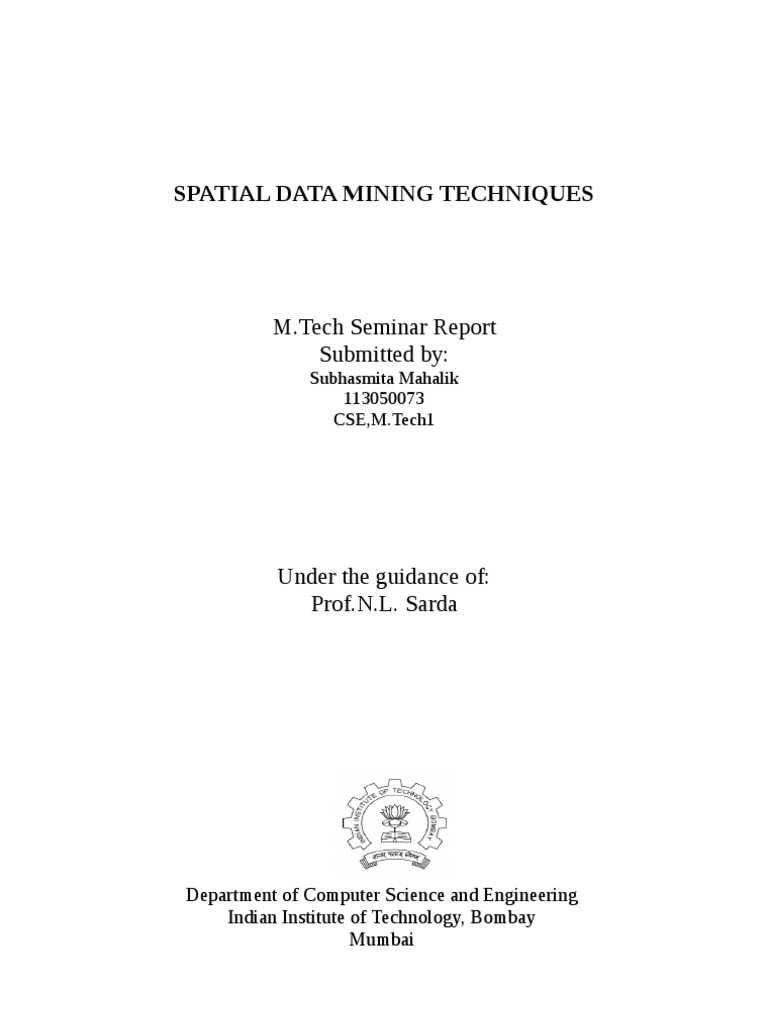 Spatial Data Mining Techniques: M.Tech Seminar Report Submitted by