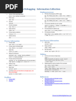 $<msgbuf Get the thread list: $< threadlist Check the status: $>status Get the process crash time: $> time/Y Get the kernel memory structures: $> kmastat Quit the debugger: $>q