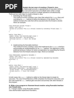 } finally { System.out.println("Finally Block"); } System.out.println("demo is over"); } } Try Block before the error. Catch Block A Stack Trace of the Error: java.lang.ArithmeticException: / by zero at demo.main(demo.java:8) The operation is not possible. Finally Block demo is over Creating Threads Threads are implemented in the form of objects that contain method called run( ). It makes up the entire body of the thread and is the only method in which the thread behaviour can be implemented.
