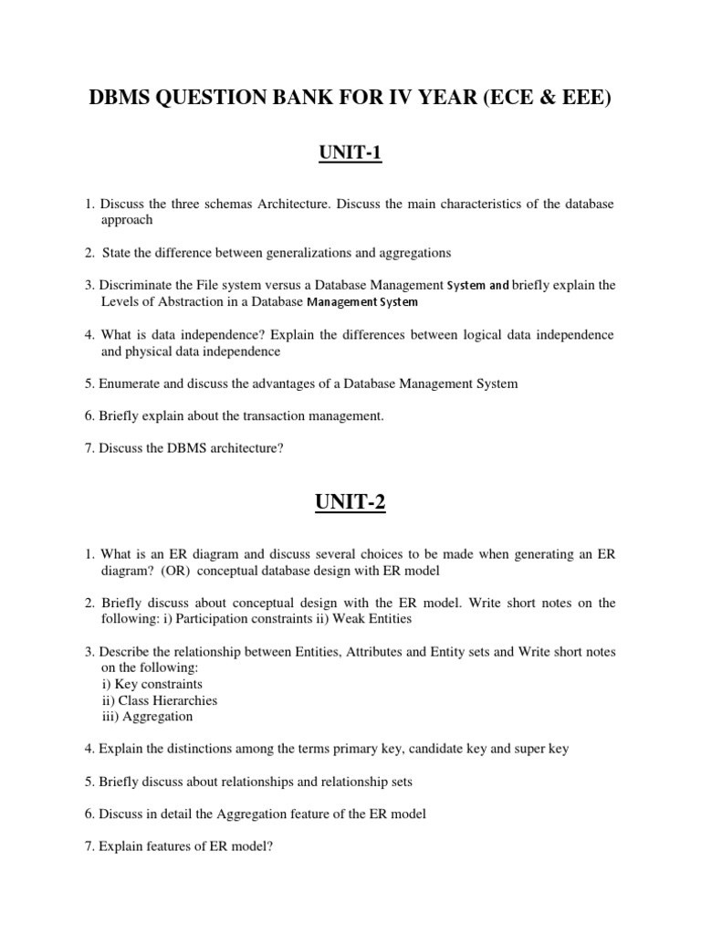 DBMS QUESTION BANK FOR IV YEAR (ECE & EEE)