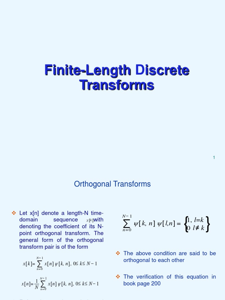 Let x[n] denote a length-N time [k ]with domain sequence denoting the coefficient of its Npoint orthogonal transform. The general form of the orthogonal transform pair is of the form