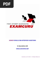 v$db_cache_advice table. If a change was necessary then I would use the alter system set db_cache_size command. 19. Explain an ORA-01555 You get this error when you get a snapshot too old within rollback. It can usually be solved by increasing the undo retention or increasing the size of rollbacks. You should also look at the logic involved in the application getting the error message. 20. Explain the difference between $ORACLE_HOME and $ORACLE_BASE. ORACLE_BASE is the root directory for oracle. ORACLE_HOME located beneath ORACLE_BASE is where the oracle products reside. Well, we have gone through the first 25 questions as I would answer them during an interview. Please feel free to add your personal experiences to the answers as it will always improve the process and add your particular touch. As always remember these are "core" DBA questions and not necessarily related to the Oracle options that you may encounter in some interviews. Take a close look at the requirements for any job and try to come up with questions that the interviewer may ask. Next time we will tackle the rest of the questions. Until then, good luck with the process. 21. How would you determine the time zone under which a database was operating? select DBTIMEZONE from dual; 22. Explain the use of setting GLOBAL_NAMES equal to TRUE. Setting GLOBAL_NAMES dictates how you might connect to a database. This variable is either TRUE or FALSE and if it is set to TRUE it enforces database links to have the same name as the remote database to which they are linking. 23. What command would you use to encrypt a PL/SQL application? WRAP 24. Explain the difference between a FUNCTION, PROCEDURE and PACKAGE. A function and procedure are the same in that they are intended to be a collection of PL/SQL code that carries a single task. While a procedure does not have to return any values to the calling application, a function will return a single value. A package on the other hand is a collection of functions and procedures that are grouped together based on their commonality to a business function or application. 25. Explain the use of table functions. Table functions are designed to return a set of rows through PL/SQL logic but are intended to be used as a normal table or view in a SQL statement. They are also used to pipeline information in an ETL process. 26. Name three advisory statistics you can collect. Buffer Cache Advice, Segment Level Statistics, & Timed Statistics 27. Where in the Oracle directory tree structure are audit traces placed? In unix $ORACLE_HOME/rdbms/audit, in Windows the event viewer 28. Explain materialized views and how they are used. Materialized views are objects that are reduced sets of information that have been summarized, grouped, or aggregated from base tables. They are typically used in data warehouse or decision support systems. 29. When a user process fails, what background process cleans up after it? PMON 30. What background process refreshes materialized views? The Job Queue Processes. 31. How would you determine what sessions are connected and what