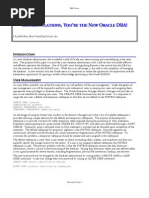 This is the part you have all been waiting on. Please if you have just skipped to this section, go back to the personal section and read it. There is much to be gained by the personal section and conveying to your interviewer who you are and how you tick from day to day. Also, the answers I am giving here are off the cuff and are not intended to be the definitive answer to these questions. There are many aspects to these questions that just cannot be answered here and honestly, you will not have time to explain any of these questions fully in the interview process. It is up to you to make sure your interviewer understands that you understand the question and have given enough information that they know you understand the concept. 1. Explain the difference between a hot backup and a cold backup and the benefits associated with each. A hot backup is basically taking a backup of the database while it is still up and running and it must be in archive log mode. A cold backup is taking a backup of the database while it is shut down and does not require being in archive log mode. The benefit of taking a hot backup is that the database is still available for use while the backup is occurring and you can recover the database to any point in time. The benefit of taking a cold backup is that it is typically easier to administer the backup and recovery process. In addition, since you are taking cold backups the database does not require being in archive log mode and thus there will be a slight performance gain as the database is not cutting archive logs to disk. 2. You have just had to restore from backup and do not have any control files. How would you go about bringing up this database? I would create a text based backup control file, stipulating where on disk all the data files where and then issue the recover command with the using backup control file clause. 3. 4. How do you switch from an init.ora file to a spfile? Explain the difference between a data block, an extent and a segment. Issue the create spfile from pfile command. A data block is the smallest unit of logical storage for a database object. As objects grow they take chunks of additional storage that are composed of contiguous data blocks. These groupings of contiguous data blocks are called extents. All the extents that an object takes when grouped together are considered the segment of the database object. 5. Give two examples of how you might determine the structure of the table DEPT. Use the describe command or use the dbms_metadata.get_ddl package. 6. 7. Where would you look for errors from the database engine? Compare and contrast TRUNCATE and DELETE for a table. In the alert log. Both the truncate and delete command have the desired outcome of getting rid of all