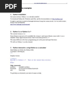 See also the file on the blackboard: tutorial.pdf which contains an extensive Python tutorial. (It is also included in the Help function.) Study these sections for block 1 of the Python course: