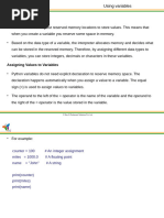A lot of time of programming is spent debugging, so make your files readable for yourself and for others. Use a lot of comment lines, they are marked with a hash character ( # ). Use the hash sign at the beginning of a comment line or at the end of a program line. You can continue on the next line with your statement by ending the line with a backslash ( \ ) as a continuation mark. Sometimes it is automatically done (in lists for example). In print statements just add a comma at the end of a line to continue on the same line with the next print statement) Use also plenty of empty lines and spaces to enhance readability as well as clear but not too long variable names. Basic statements PRINT print Hello world print The answer is ,a print Two solutions are,x1,and,x2