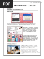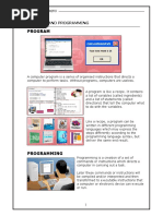 LESSON TWO : GENERATIONS OF PROGRAMMING LANGUAGES 1. Levels of programming languages : a) Low-level language b) High-level language 2. A low-level programming language is a programming language that provides little or no abstraction from a computers microprocessor. 3. A high-level programming language is a programming language that is more abstract, easier to use, and more portable across platform. 4. Generations of programming languages : a) First Generation Language machine language b) Second Generation Language assembly language c) Third Generation Language COBOL, BASIC, C, Ada, Compilers, Interpreter d) Fourth Generation Language Report Generators, Query Language Application generators e) Fifth Generation Language natural language 5. First and Second Generation Programming Language are Low-level Programming Languages. 6. Third, Fourth and Fifth Generation Programming Language are HighLevel Programming Language. FIRST GENERATION PROGRAMMING LANGUAGE 1. The first generation of programming language, or 1GL, is machine language. 2. Machine language is a set of instructions and data that a computers central processing unit can execute directly. 3. Machine language statements are written in binary code, and each statement corresponds to one machine action. SECOND GENERATION PROGRAMMING LANGUAGE 1. The second generation programming language, 2GL, is assembly language. 2. Assembly language is the human-readable notation for the machine language used to control specific computer operations. 3. An assembly language programmer writes instructions using symbolic instruction codes that are meaningful abbreviations or mnemonics. 4. An assembler is a program that translates assembly language into machine language.