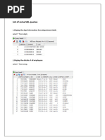 more than 2 years. a) delete from emp where (sysdate-hiredate)/365>2; 214. Provide a commission(10% Comm Of Sal) to employees who are not earning any commission. a) select sal*0.1 from emp where comm is null 215. If any employee has commission his commission should be incremented by 10% of his salary. a) update emp set comm=sal*.1 where comm is not null; 216. Display employee name and department name for each employee. a) select empno,dname from emp,dept where emp.deptno=dept.deptno 217. Display employee number,name and location of the department in which he is working. a) select empno,ename,loc,dname from emp,dept where emp.deptno=dept.deptno; 218. Display ename,dname even if there are no employees working in a particular department(use outer join). a) select ename,dname from emp,dept where emp.deptno=dept.deptno(+) 219. Display employee name and his manager name. a) select p.ename,e.ename from emp e,emp p where e.empno=p.mgr;