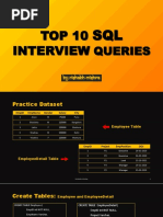 SUBSTR(LOWER(ENAME),1,3)|| SUBSTR(UPPER(ENAME),3,LENGTH(E NAME)) FROM EMP; 188. Display the 10th record of emp table without using group by and rowid? A) SELECT * FROM EMP WHERE ROWNUM<11 MINUS SELECT * FROM EMP WHERE ROWNUM<10 189. Delete the 10th record of emp table. A) DELETE FROM EMP WHERE EMPNO=(SELECT EMPNO FROM EMP WHERE ROWNUM<11 MINUS SELECT EMPNO FROM EMP WHERE ROWNUM<10) 190. Create a copy of emp table; a) create table new_table as select * from emp where 1=2; 191. Select ename if ename exists more than once. a) select ename from emp e group by ename having count(*)>1; 192. Display all enames in reverse order?(SMITH:HTIMS). a) SELECT REVERSE(ENAME)FROM EMP; 193. Display those employee whose joining of month and grade is equal. A) SELECT ENAME FROM EMP WHERE SAL BETWEEN(SELECT LOSAL FROM SALGRADE WHERE GRADE=TO_CHAR(HIREDATE,'MM')) AND