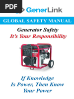 use of power or accidentally energizing other electrical systems. Carbon monoxide from a generators exhaust. Fires from improperly refueling a generator or inappropriately storing the fuel for a generator. Noise and vibration hazards. Shock and Electrocution The electricity created by generators has the same hazards as normal utility-supplied electricity. It also has some additional hazards because generator users often bypass the safety devices (such as circuit breakers) that are built into electrical systems. The following precautions are provided to reduce shock and electrocution hazards: Never attach a generator directly to the electrical system of a structure (home, office, trailer, etc.) unless a qualified electrician has properly installed the generator with a transfer switch. Attaching a generator directly to a building electrical system without a properly installed transfer switch can energize wiring systems for great distances. This creates a risk of electrocution for utility workers and others in the area. Always plug electrical appliances directly into the generator using the manufacturers supplied cords or extension cords that are grounded (3-pronged). Inspect the cords to make sure they are fully intact and not damaged, cut or abraded. Never use