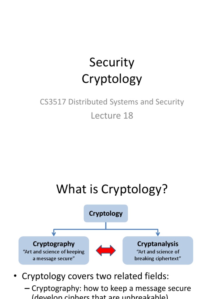 Cryptography: how to keep a message secure (develop ciphers that are unbreakable) Cryptanalysis: how break ciphers and cipher-text