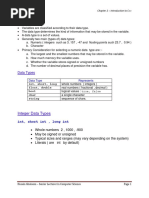 Floating point types can contain decimal numbers, for example 1.23, -.087. There are