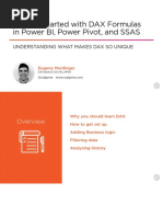 This QuickS Start is for user rs new to Powe erPivot or tabul lar model proje ects authored in n SQL Server Data D Tools. It is meant to give g you a quick k and easy intro oduction on ho ow you can use e Data Analysis Expressions (D DAX) to solve a number of basic data modeling and ana alytical problem ms. This topic in ncludes concep ptual informatio on, a series of tasks t omplete, and a few quizzes to test what youve learned. After completing this topic, you should have a good you can co understand ding of the most basic fundam mental concept ts in DAX. What is DA AX? DAX is a co ollection of functions, operato ors, and constants that can be e used in a form mula, or expression, to calcula ate and return one or more values. v Stated more m simply, DA AX helps you create new information from data d already in your model. AX so importan nt? Why is DA Its easy to create a PowerPivot workboo ok and import some data into o it. You can ev ven create Pivot tTables or PivotCharts s that display im mportant information without using any DA AX formulas. Bu ut, what if you need n to analyze e critical sale es data across several s product t categories and for different date ranges? Or, O you need co ombine importa ant inventory data d from sever ral tables in dif fferent data sou urces? DAX formulas provide this capability and many othe er important capabilities c as well. w Learning how to create effective e DAX formulas f will he elp you get the e most out of your data. When n you get the in nformation you u need, you can n begin to solve real business s problems that t affect your bo ottom line. This is s Business Intelligence, and DA AX will help you get there.