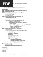 10.Write a Program to Implement Dijakstras algorithm in C. #include<Stdio.h> #include<Conio.h> int n; int weight[100][100]; char intree[100]; int d[100]; int whoTo[100]; void updatedistance(int target) { int i; for(i=0;i<n;i++) if((weight[target][i]!=0)&&(d[i]>weight[target][i])) { d[i]=weight[target][i]; whoTo[i]=target; } } void main() { FILE *f=fopen("dist.txt","r"); int i,j,total,treesize; clrscr(); fscanf(f,"%d",&n); for(i=0;i for(j=0;j fscanf(f,"%d",&weight[i][j]); fclose(f); for(i=0;i intree[i]=0; printf("Adding Nodes:%c\n",0+'A'); intree[0]=1; updatedistance(0); total=1;