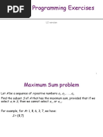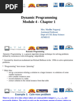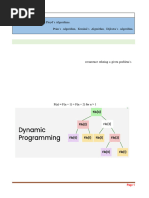 The steps to creating a dynamic programming algorithm are: 1. Define the structure of an optimal solution 2. Generate the value of the optimal solution recursively 3. Create an optimal solution in a bottom up manner This is usually hard to understand until we see examples, so I will go over 2 examples 1. Money-board problem Given an NxN board find the path starting from any square at the start, to a target square in row n which maximizes the amount of money that can be obtained. The person can only move forward, diagonally or straight. Lets assume we have a 4x4 board (Figure 1): 4 3 2 1 1