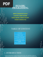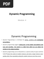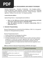 subproblems which are solved and combined. In a divide and conquer paradigm we create unique subproblems and solve them, however in dynamic programming we solve subproblems which are shared between different subproblems. Dynamic programming is usually applied to an optimization problem, e.g., maximizing something or minimizing something. These problems have many different solutions, but one of them is an optimal solution.