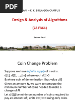 Pseudo Code for the recursive algorithm. function MC (A) if A = 0 then return 0 else minimum = for k : 1 to N if (d[k] A) then coins = 1 + MC (A d[k]) if (coins < minimum) then minimum = coins end end end return minimum end end