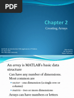 Multidimensional Arrays MATLAB supports multidimensional array 0i.e., n-? arrays1 by using the same functions and addressing techni9ues that apply to %- and '-? arrays. The third dimension is numbered by pages, while higher dimensions have no generic name. A (-? array has row, columns and pages. @ach page contains a '-? array of rows and columns. All the pages of a (-? array must have the same number of rows and columns. Multidimensional Array Constructions A" Ceros 0),(,'1 A03,3,%1 " $ $ $ $ $ $ $ $ $ $ $ $