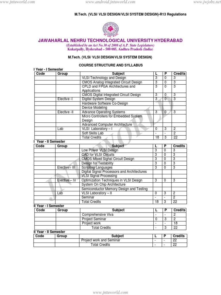 M.Tech. (VLSI/ VLSI DESIGN/VLSI SYSTEM DESIGN)-R13 Regulations
