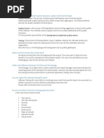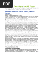 the responsibility is given, the team member should be trusted and let his work done. 33. Where do you see yourself in another 5 years? Answer: I see myself a QA Lead in another 5 years. (You can also say QA Manager, but since the QA Manager is taking your interview most of the time, they some times feel challenged. Therefore, it might be a good idea to limit you to QA Lead) 34. Why are you in QA? Answer: I am in QA because I like this job. 35. Why do you like this job? Answer: I like this job, because it is process oriented. Meaning that I get an opportunity to work from analyzing the requirement documents to writing test plans, test cases, testing the application, logging defects, retesting, preparing reports and finally testing in production as well. Therefore, I am involved from the very beginning to the end of the software development life cycle (SDLC) process. I like this. Another reason is I like to find defects. I enjoy logging defects. The more defects I find, the happier I am. 36. How do you determine what to test in an application? Answer: First of all we have the test cases (or test scripts) that are written based on the requirement document. This pretty much covers what functionalities to test. Therefore, looking at the test cases tells us what to test in the application. 37. If you have no documentation about the product, how do you test an application? Describe the process. Answer: Well, this is a situation where I have come across several times. Some of the companies in my previous projects did not have any documents. In this case, I went to the Business Analyst and some times to developers to find out how exactly the functionalities work, how to navigate from one page to another page and so on. After